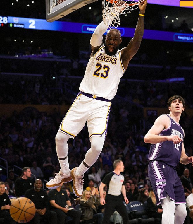 在东契奇的传球引领下,湖人一共有五名球员得分上双,其中詹姆斯下半场找回了八倍镜,四节战罢将命中率提升到了15中8,用24+1+5+2+1填满了数据栏,近期备受诟病的艾顿也靠着百发百中的发挥砍下了12分。