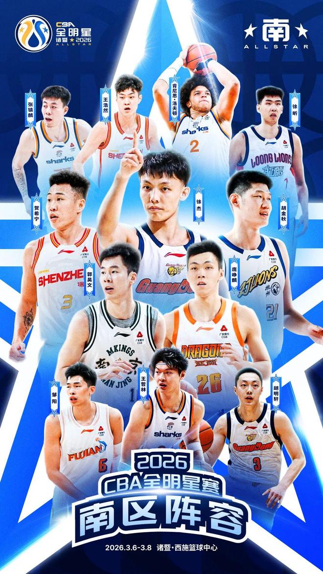 2026CBA全明星周末将于3月6日至8日在浙江诸暨举行,由于浙江外援约克取消注册、广厦后卫孙铭徽受伤均无法参赛,CBA公司近日宣布张镇麟、邹阳递补进入南区替补球员名单。
