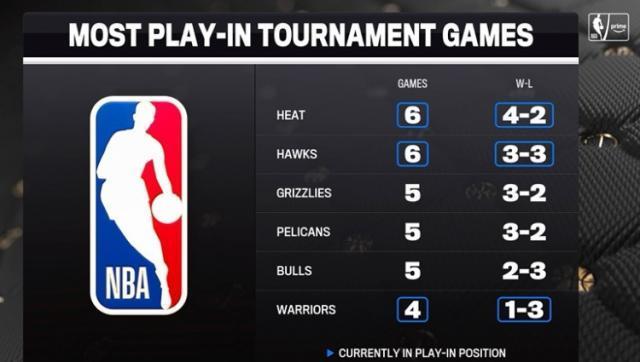 出战附加赛场数榜:热火老鹰6场最多 勇士4场 本赛季仍在附加赛区