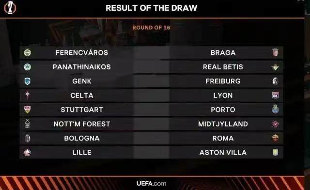 欧冠1/8决赛对阵:(种子队在后,先客后主)
