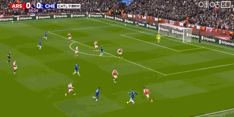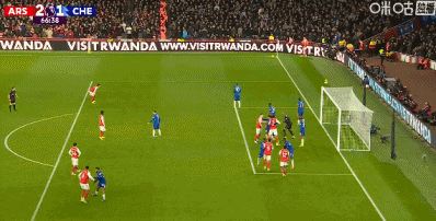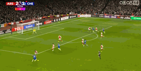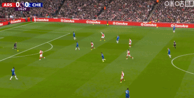 第29分钟,萨卡内切传球,赖斯放了高射炮